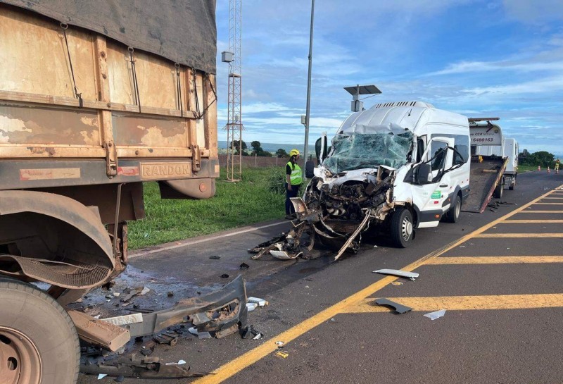 Van com pacientes de hemodiálise colide com caminhão; um morre e 6 ficam feridos