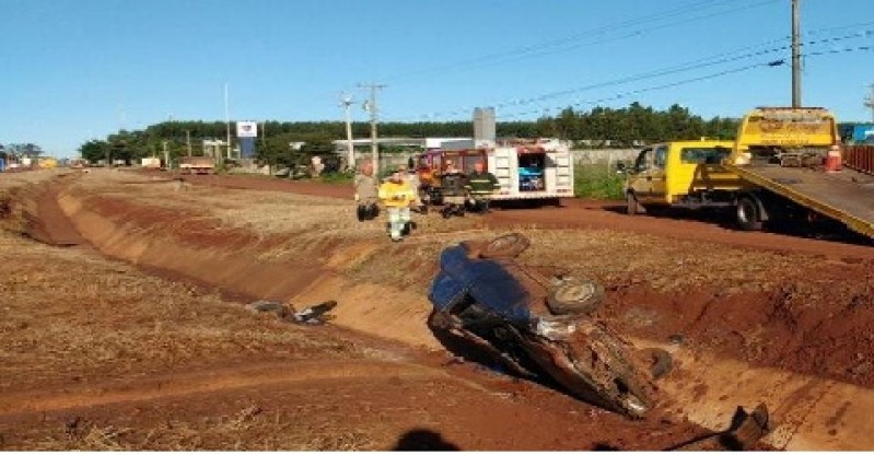 Condutor fica em estado grave após Voyage sair da pista e capotar na BR-163