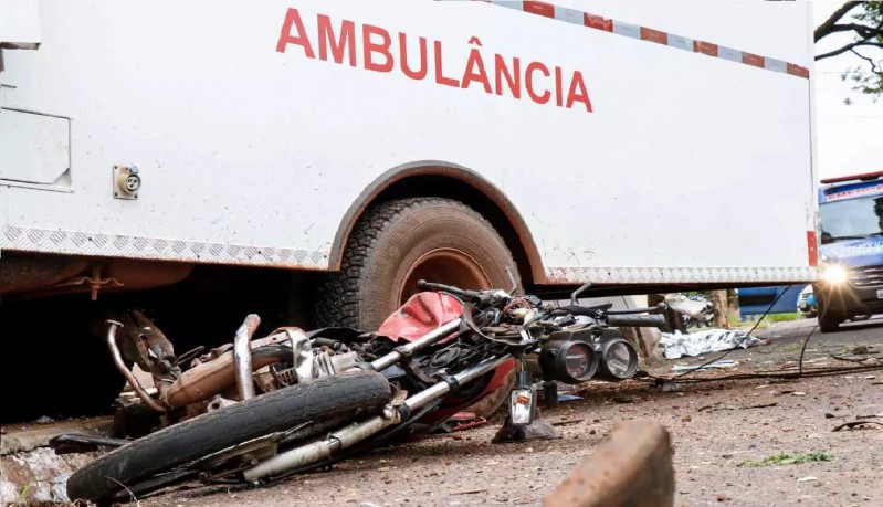 Acidente entre motocicleta e ambulância provocou uma morte e cenário qu...