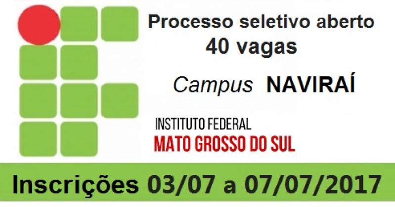 O IFMS Campus Naviraí está com processo seletivo aber...