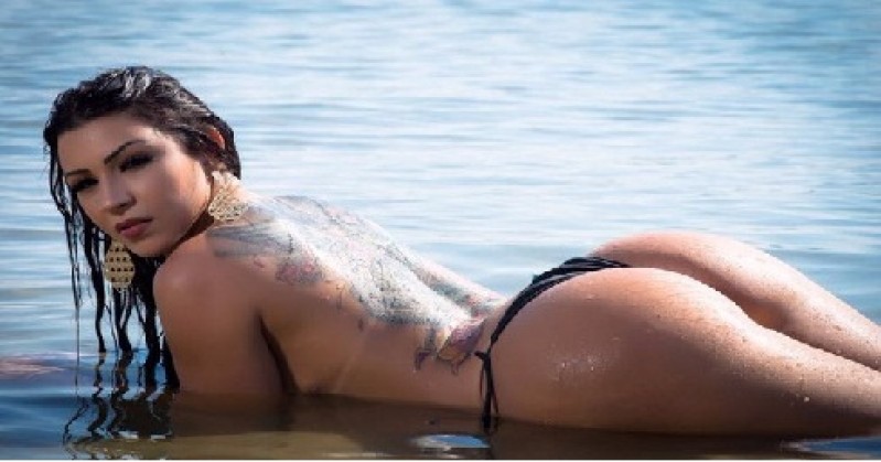 Filha de Gretchen posa de fio dental e topless, mas descarta nu