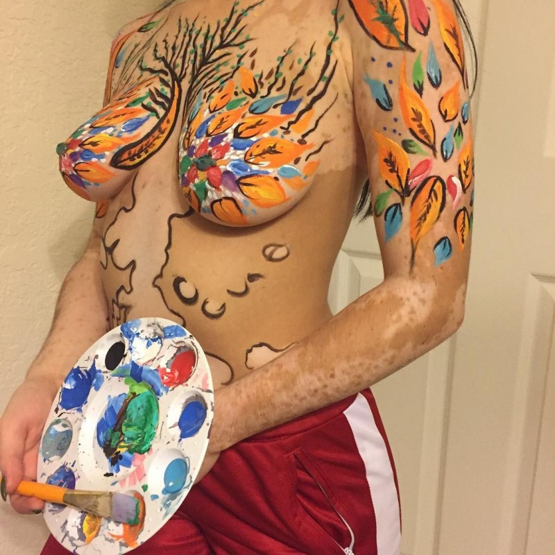 Garota de 21 anos transforma vitiligo em pintura corporal incrível!
