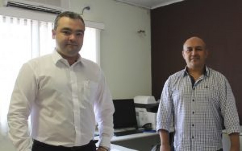O prefeito de Naviraí, Izauri Macedo (DEM) recebeu em seu gabinete o gerente d...