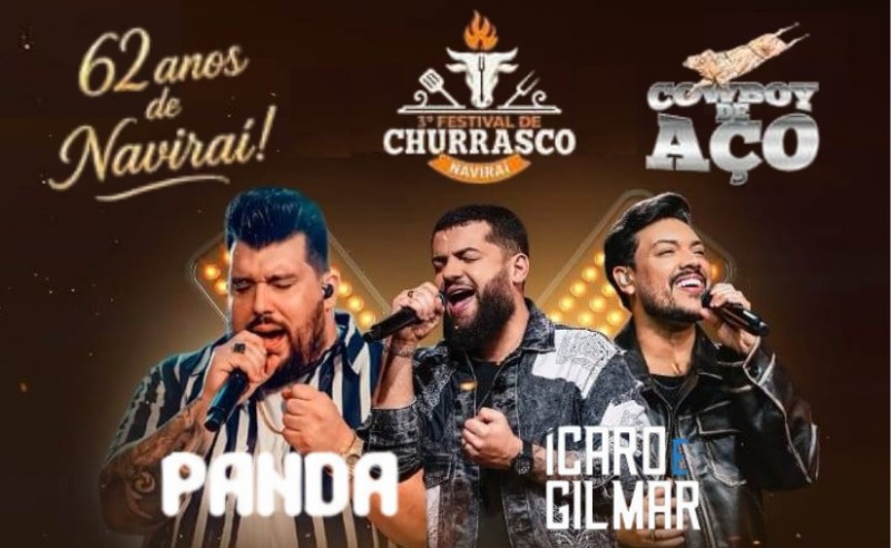 Hoje tem final do rodeio, show do Panda e Ícaro e Gilmar no 3º Festival de Churrasco de Naviraí