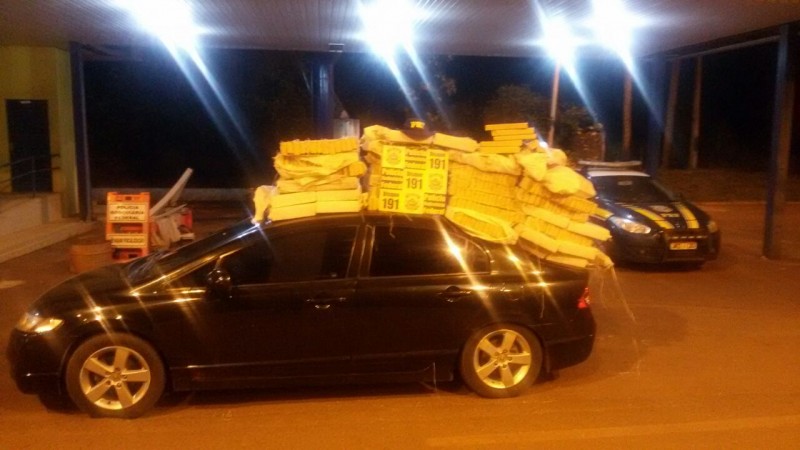 PRF prende trio com mais de 400kg de maconha em carro roubado