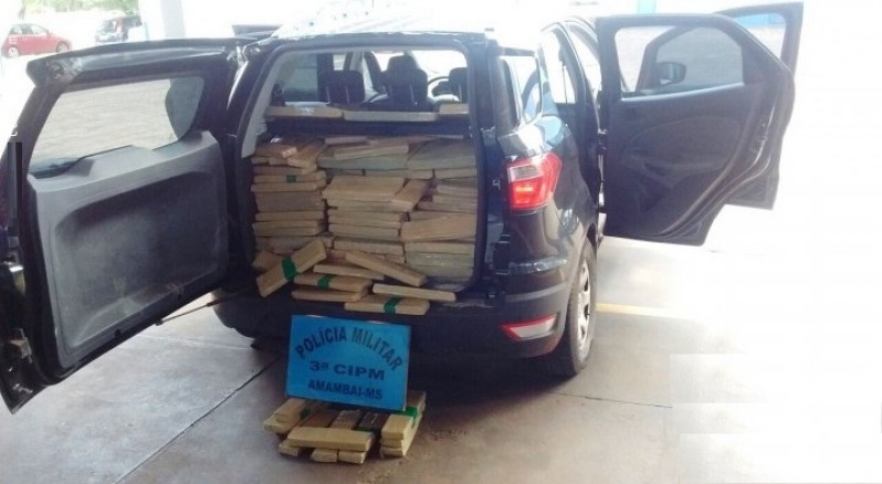 Sidrolândia - Traficante é preso com 112 quilos de maconha em carro roubado