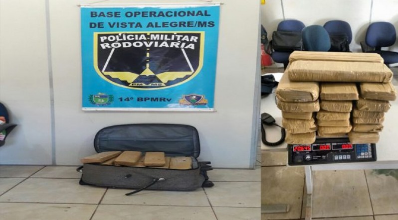 Polícia Militar Rodoviária apreende cerca de 21 quilos de maconha em ônibus na MS-164