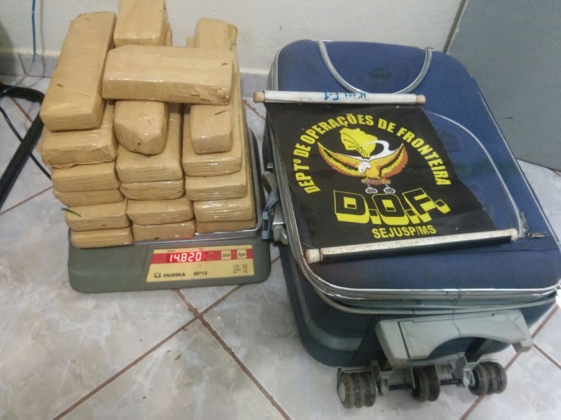 Eldorado - Com 14 kg de maconha na mala, jovem diz que comprou para consumo próprio