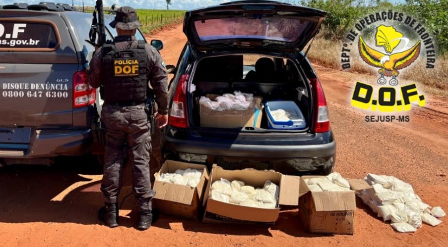 Na BR-487 em Itaquiraí, DOF apreende Citroën C3 com mais de 150 quilos de agrotóxicos
