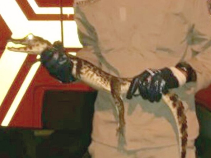 Um filhote de jacaré, de aproximadamente um metro de comprimento, foi encontrad...