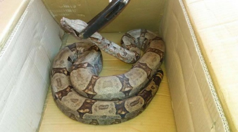 Ivinhema - Corpo de Bombeiros captura jiboia em residencial