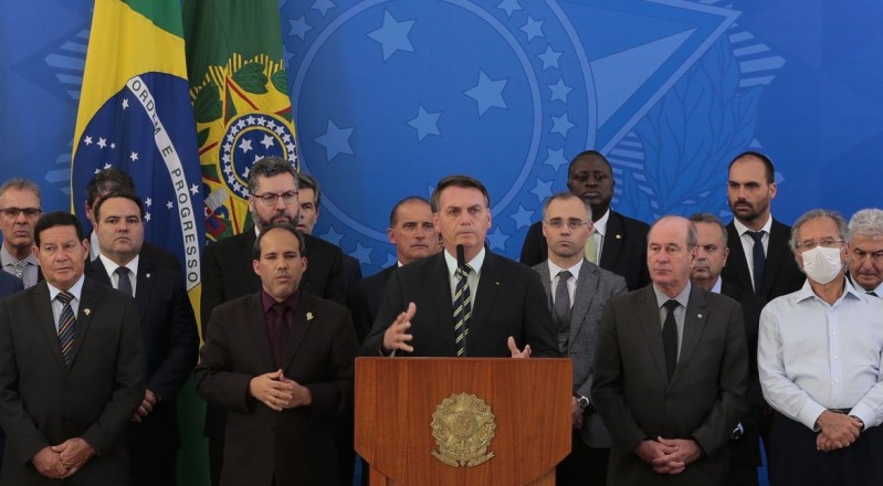 O presidente Jair Bolsonaro fez um pronunciamento na tarde desta sexta-feira (24), n...