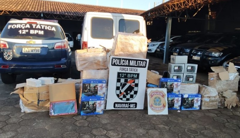 Em ação conjunta em Naviraí, PM e PF apreendem mercadorias descaminhadas