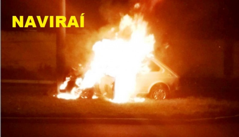 No Jardim Progresso, Fiat 147 pega fogo após colidir em super poste