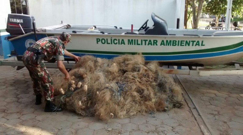Naviraí - PMA desmonta acampamentos à margem do rio Paraná e apreende 40 redes de pesca, medindo 1 km