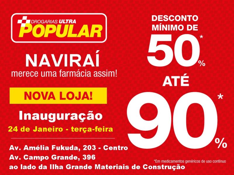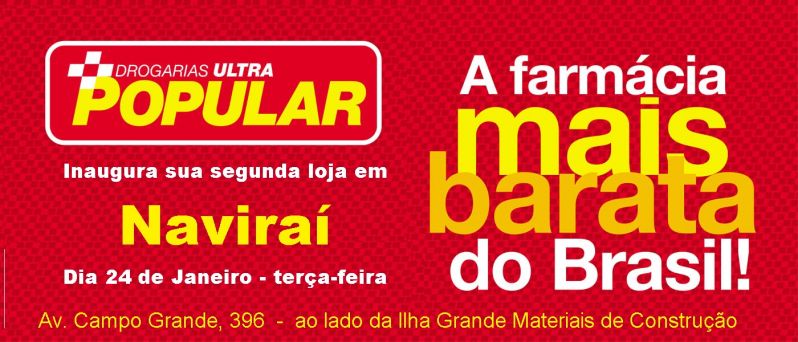 Inaugura amanhã a segunda loja da Rede Drogarias Ultra Popular em Naviraí.