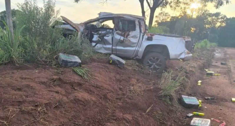Na MS-295 em Iguatemi, morador de Itaquiraí morre após capotar Amarok carregada com maconha