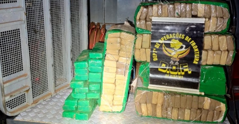 Em ação conjunta PRF e PM apreendem 58 kg de skunk em Itaquiraí