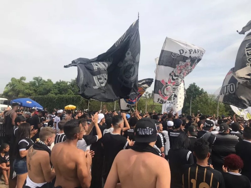 Torcedores do Corinthians se reuniram no CT Joaquim Grava, na manhã deste s&aac...