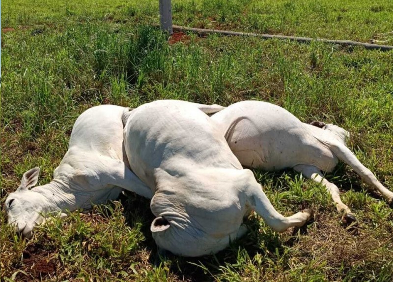 Poste de energia cai em fazenda e seis vacas da raça Nelore morrem eletrocutadas