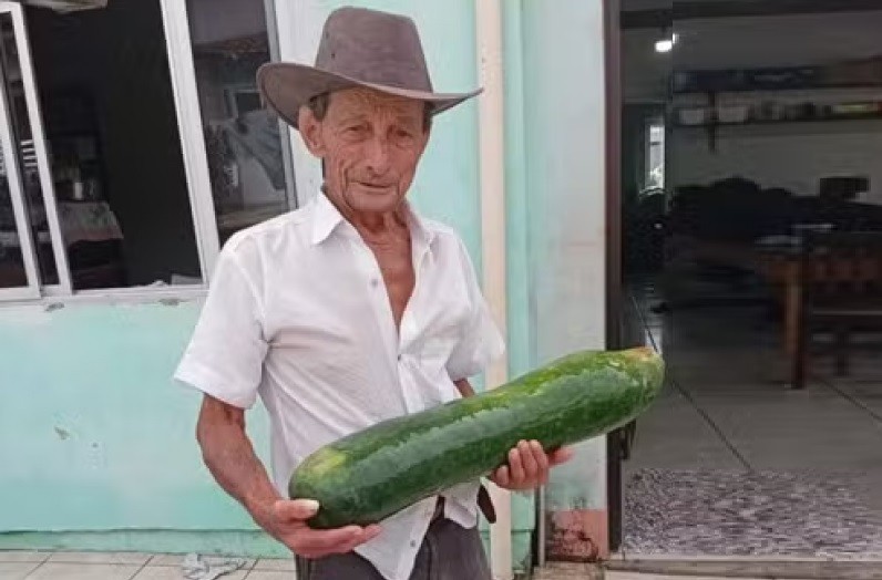 Pepino gigante surpreende agricultor de 85 anos em SC: 'Nunca vi algo igual'