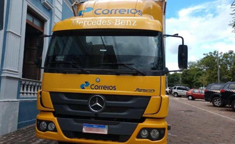Um caminhão a serviço dos Correios foi flagrado pela Polícia Fe...
