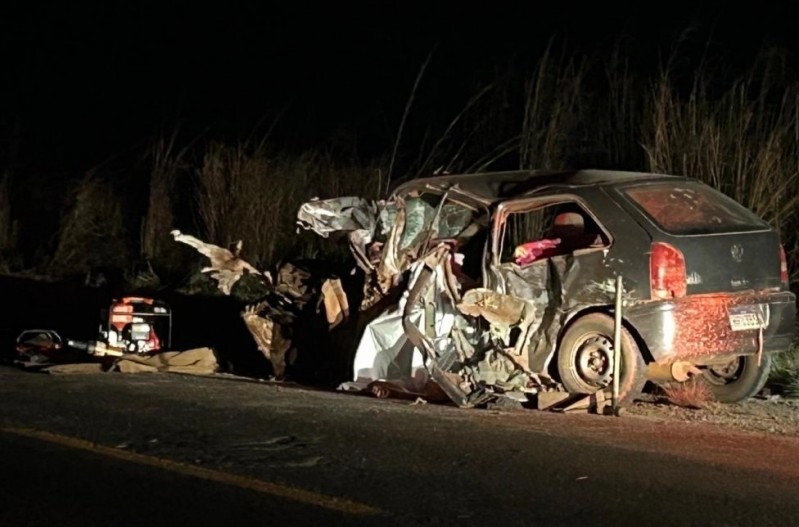Motorista morre e carro vira sucata ao colidir na traseira de bitrem na MS-267 em Nova Andradina