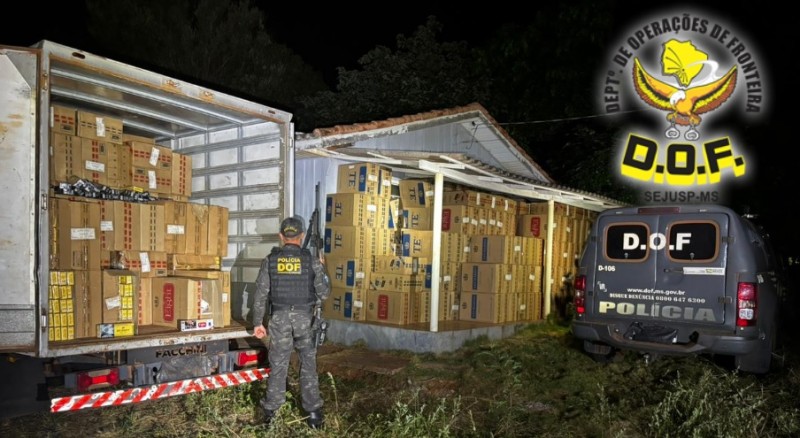 20/10/2025 DOF recupera caminhão baú furtado em Naviraí carregado com 15 mil pacotes de cigarros contrabandeados ...