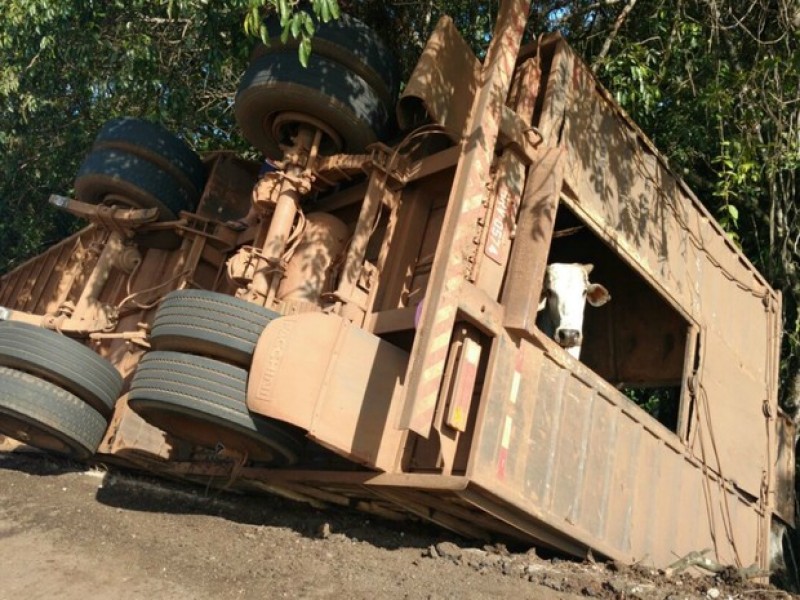 Motorista fica ferido e dezenas de bois morrem em acidente na BR-262
