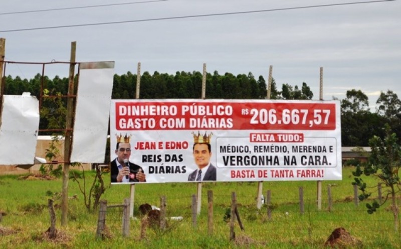 Moradores de Sidrolândia fazem outdoor contra diárias pagas a vereadores