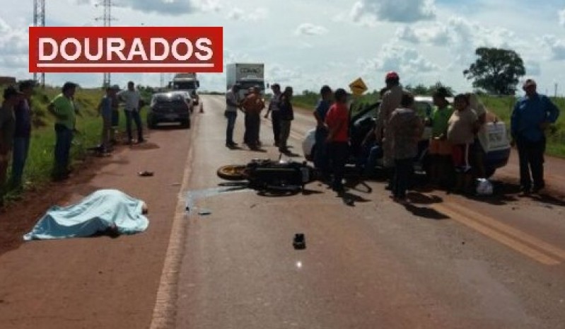 Acidente entre CB 500 e Fiat Palio causa a morte de motociclista na Perimetral, em Dourados