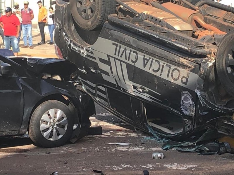 Viatura do SIG de Naviraí capota ao ser atingida por veículo em cruzamento