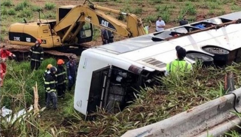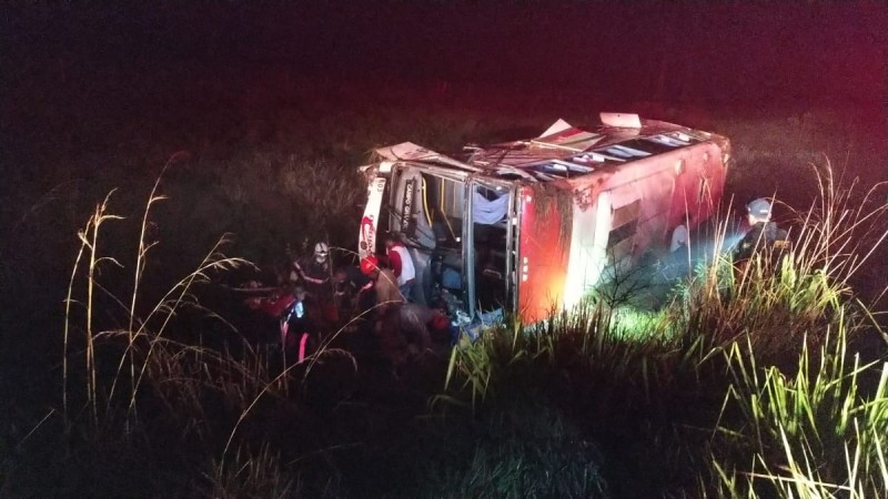 Ônibus de sacoleiros que ia para Três Lagoas capota e 2 pessoas morrem