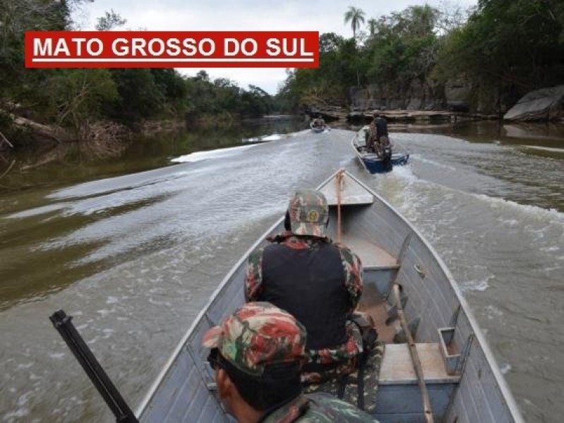Durante fiscalização fluvial no rio Amambai, entre a ponte da rodovia BR...