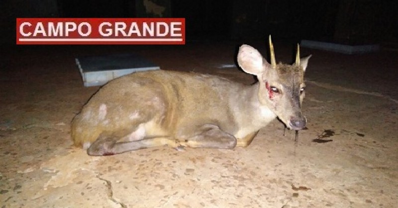 Veado atropelado é resgatado pela PMA no Parque dos Poderes