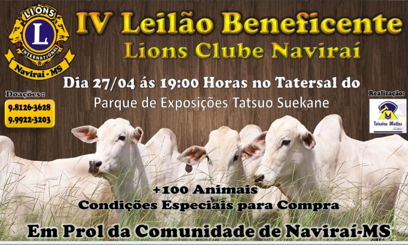 Naviraí- Lions Clube realiza nesta quinta-feira o IV Leilão Beneficente