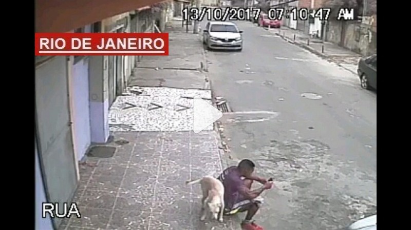 Vídeo - Cachorro faz xixi nas costas de estudante e é adotado por ele