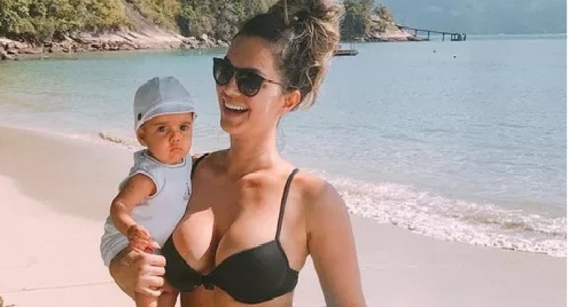 Kelly Key mostra boa forma com filho de 5 meses no colo