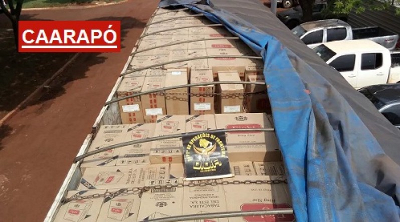 DOF apreende carreta e caminhão com 100 mil pacotes de cigarro do Paraguai