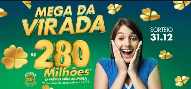 Concurso 2110: Mega da Virada prêmio estimado R$ 280 milhões