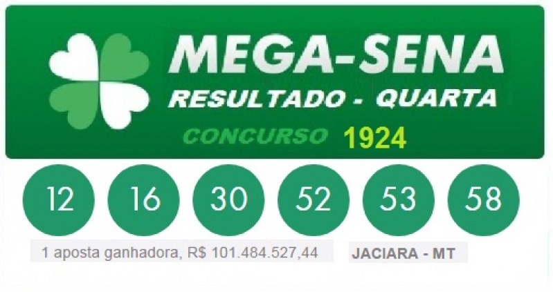 Concurso 1924 da Mega-Sena, apostador leva sozinho prêmio de R$ 101 milhões