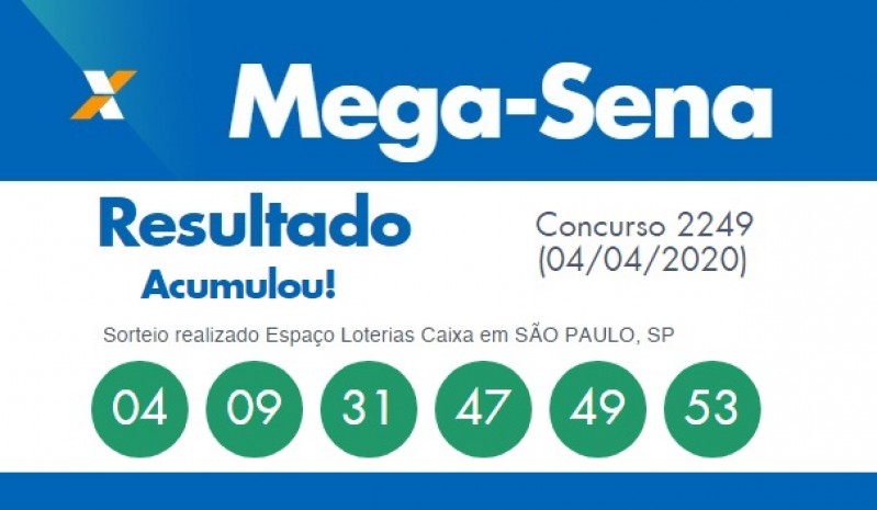 Mega-Sena, concurso 2.249: ninguém acerta as seis dezenas e prêmio vai a R$ 10,5 milhões