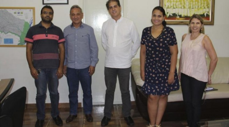 O prefeito de Naviraí, Izauri Macedo (DEM) recebeu em seu gabinete o gerente d...
