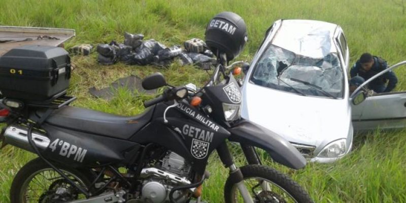 Ponta Porã - Traficante capota veiculo furtado com quase meia tonelada de maconha