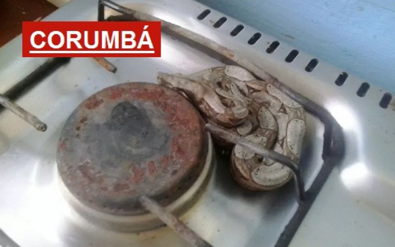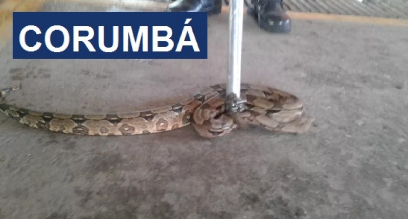 Bombeiros capturam cobra na entrada de motel, em Naviraí