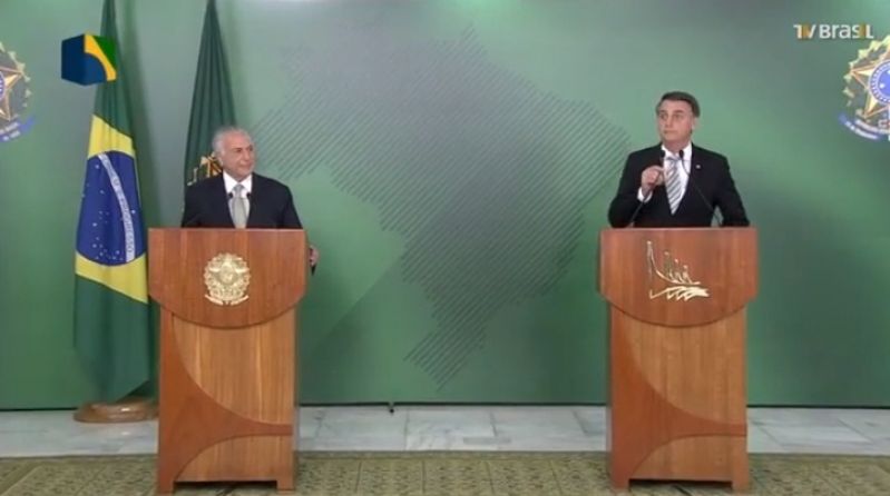 O presidente eleito, Jair Bolsonaro, e o presidente Michel Temer formalizaram nesta qu...