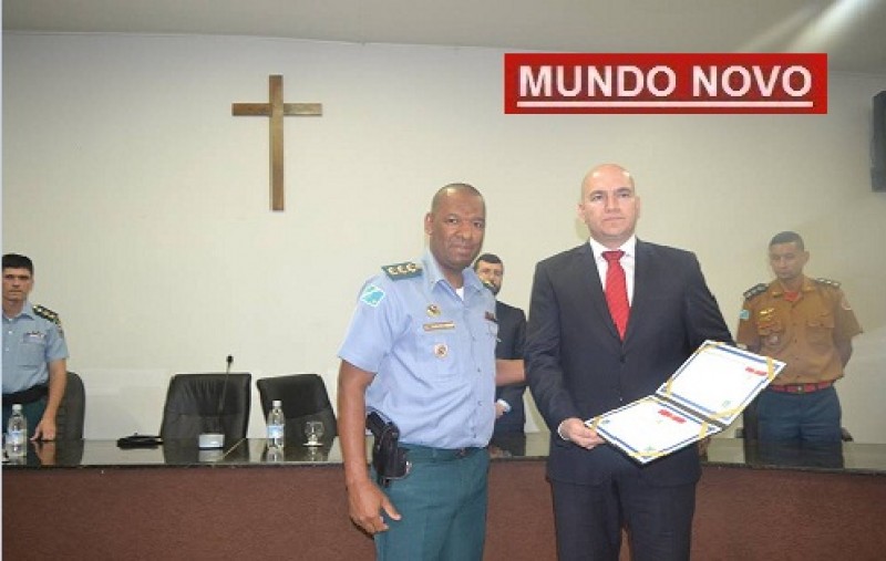 Em Mundo Novo, ministro do Interior do Paraguai recebe a Medalha do Mérito da Polícia Militar de MS