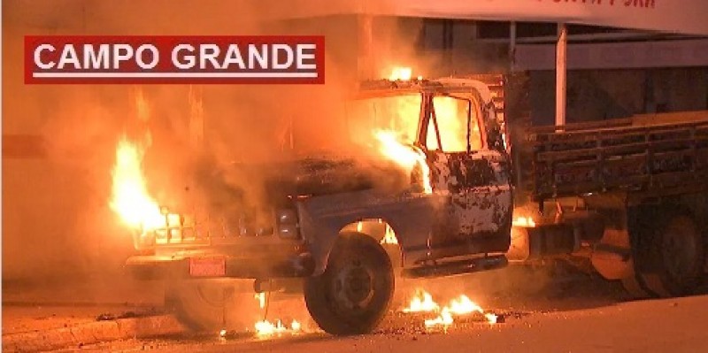 Um ônibus coletivo da empresa Expresso Queiroz acabou incendiado nesta manh&atil...
