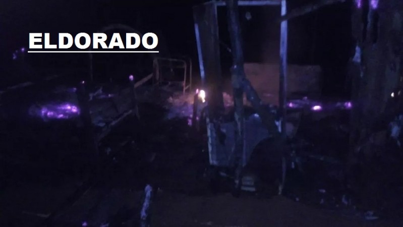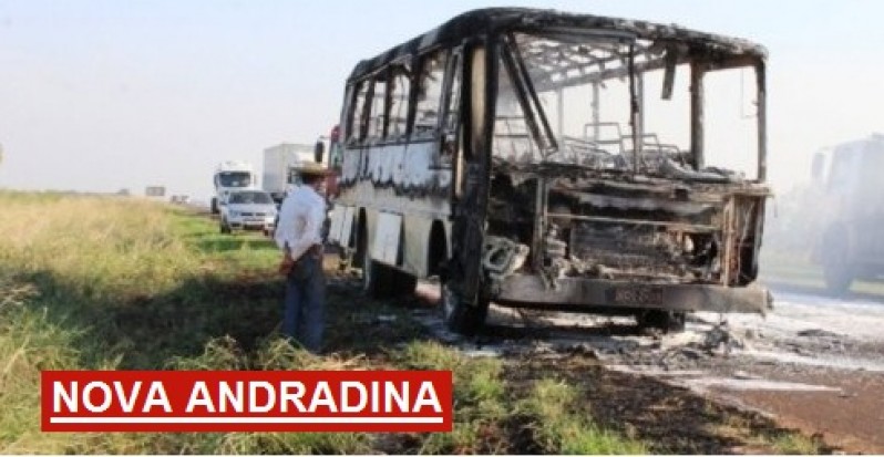 Ônibus pega fogo na rodovia MS-134 e fica completamente destruído