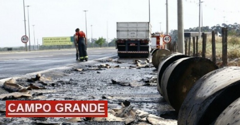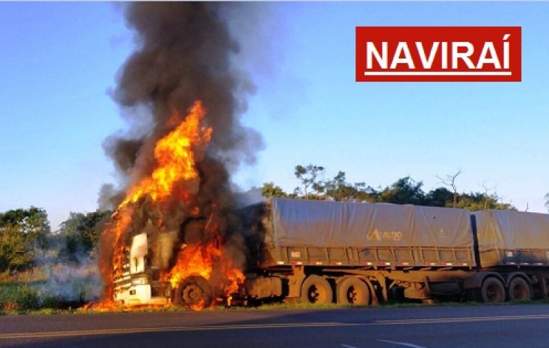 Caminhão com carga de papel pega fogo na rodovia BR-163